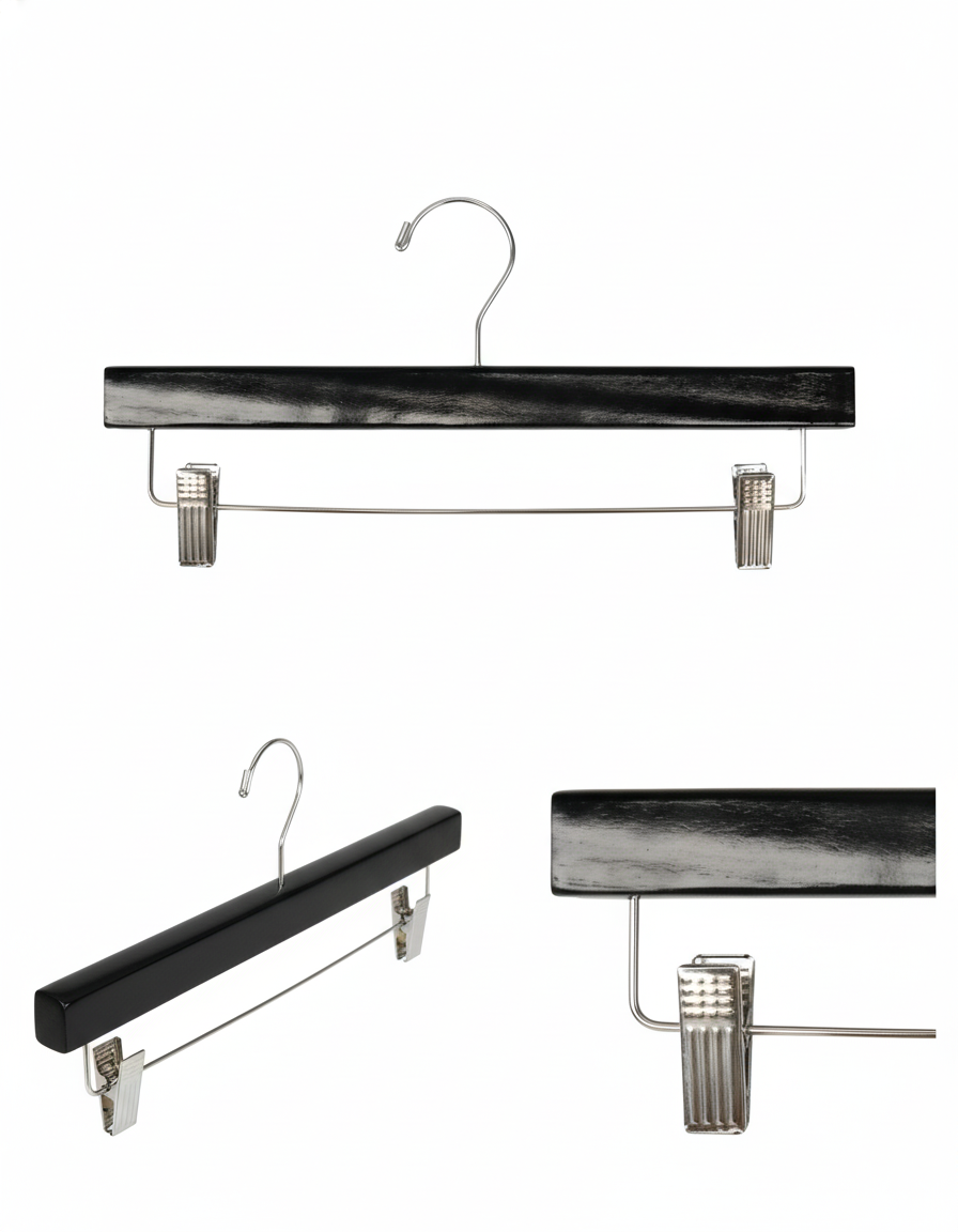 Keep your garments neat, stylish, and secure with the HA-500BK2 Wooden Pant/Skirt Hanger — a perfect blend of modern design and functionality.