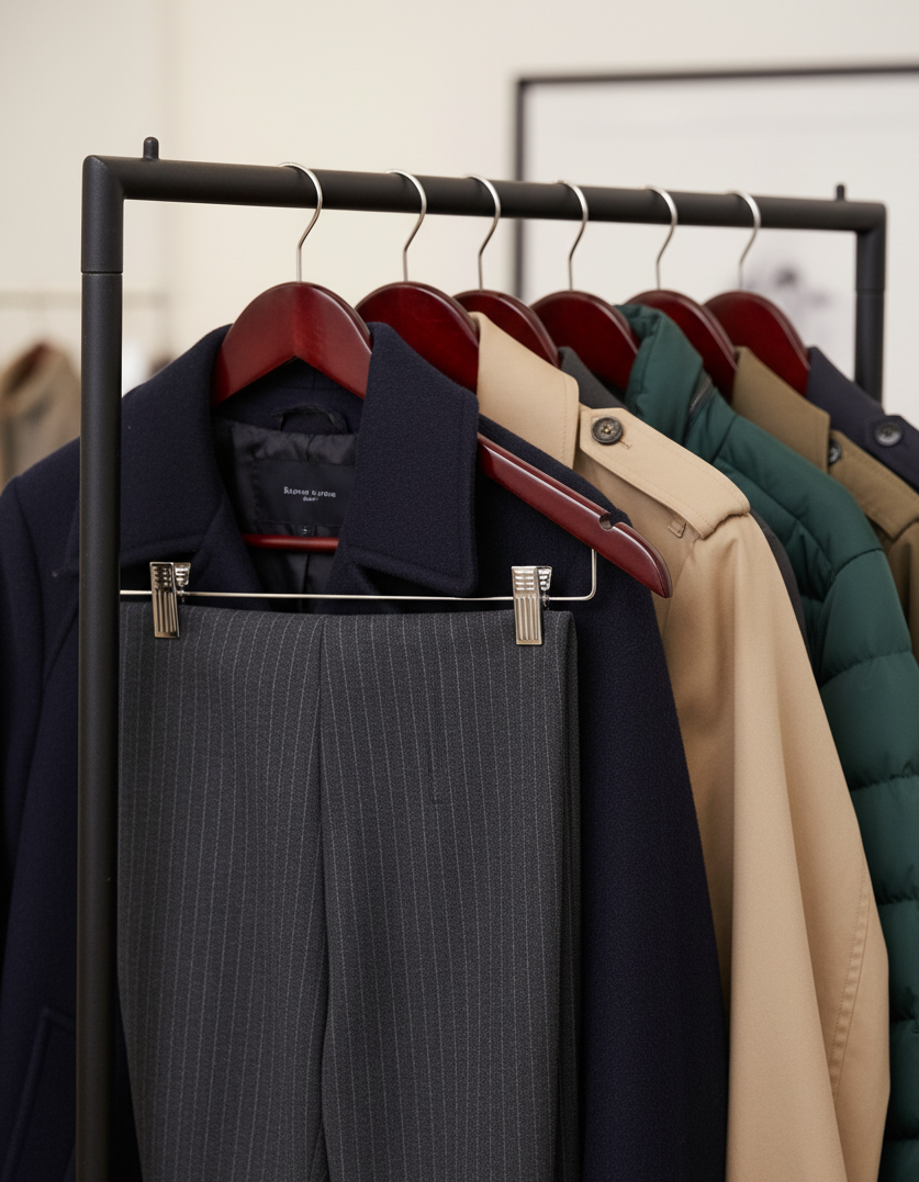 Equipped with cushioned clips, it securely holds pants, skirts, or coordinating pieces without leaving marks or damaging fabrics — ensuring your garments always look their best.