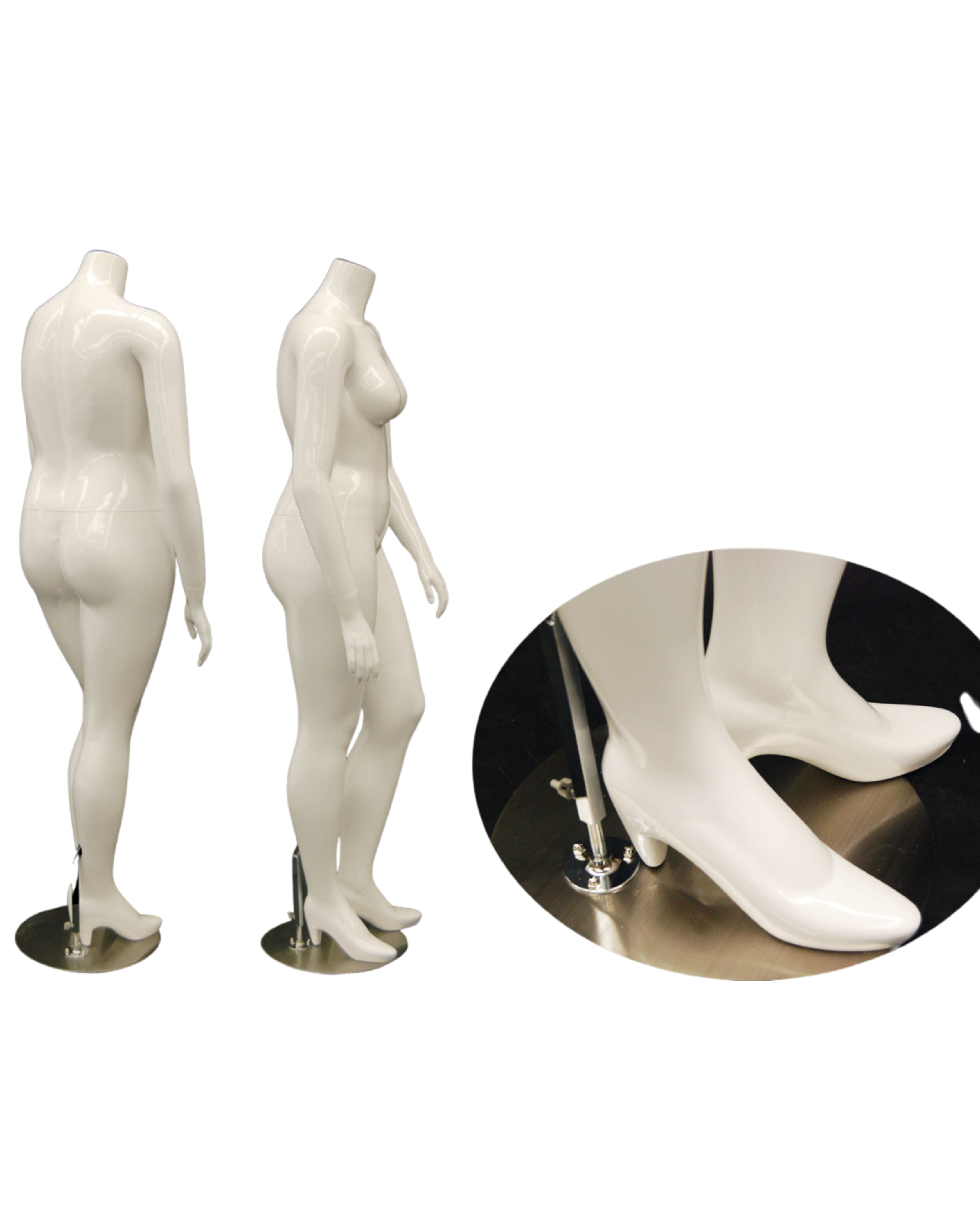 Headless plus-size female mannequin with high-heel foot design