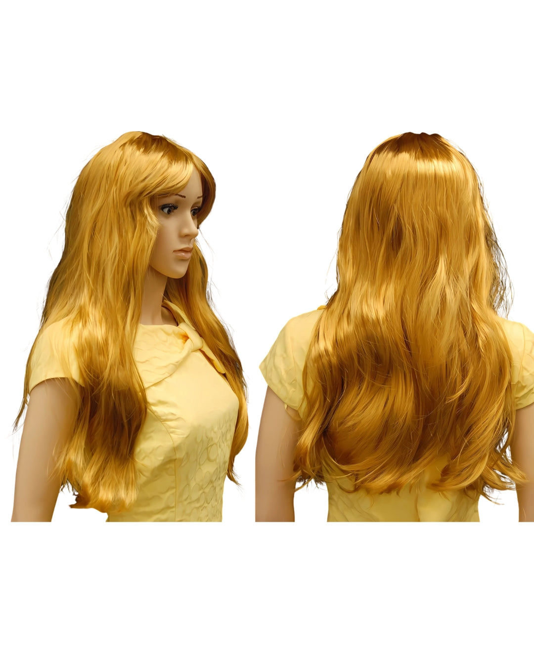 Material: Premium Heat-Resistant Synthetic Fiber Color: Honey Blonde / Golden Yellow Style: Extra-Long Wavy