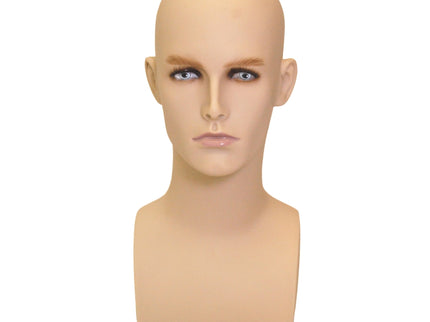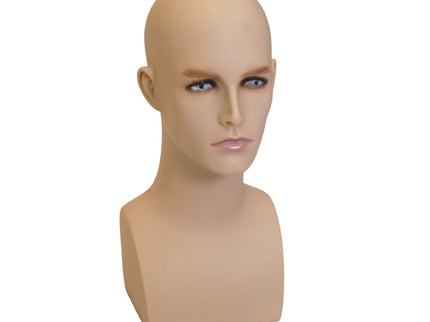 Display your products with confidence using this Male Realistic Mannequin Head, designed with lifelike detail to bring a natural look to your presentations. With a fleshtone skin color and realistic facial features, this mannequin head is perfect for showcasing hats, wigs, eyewear, headphones, masks, and other accessories.