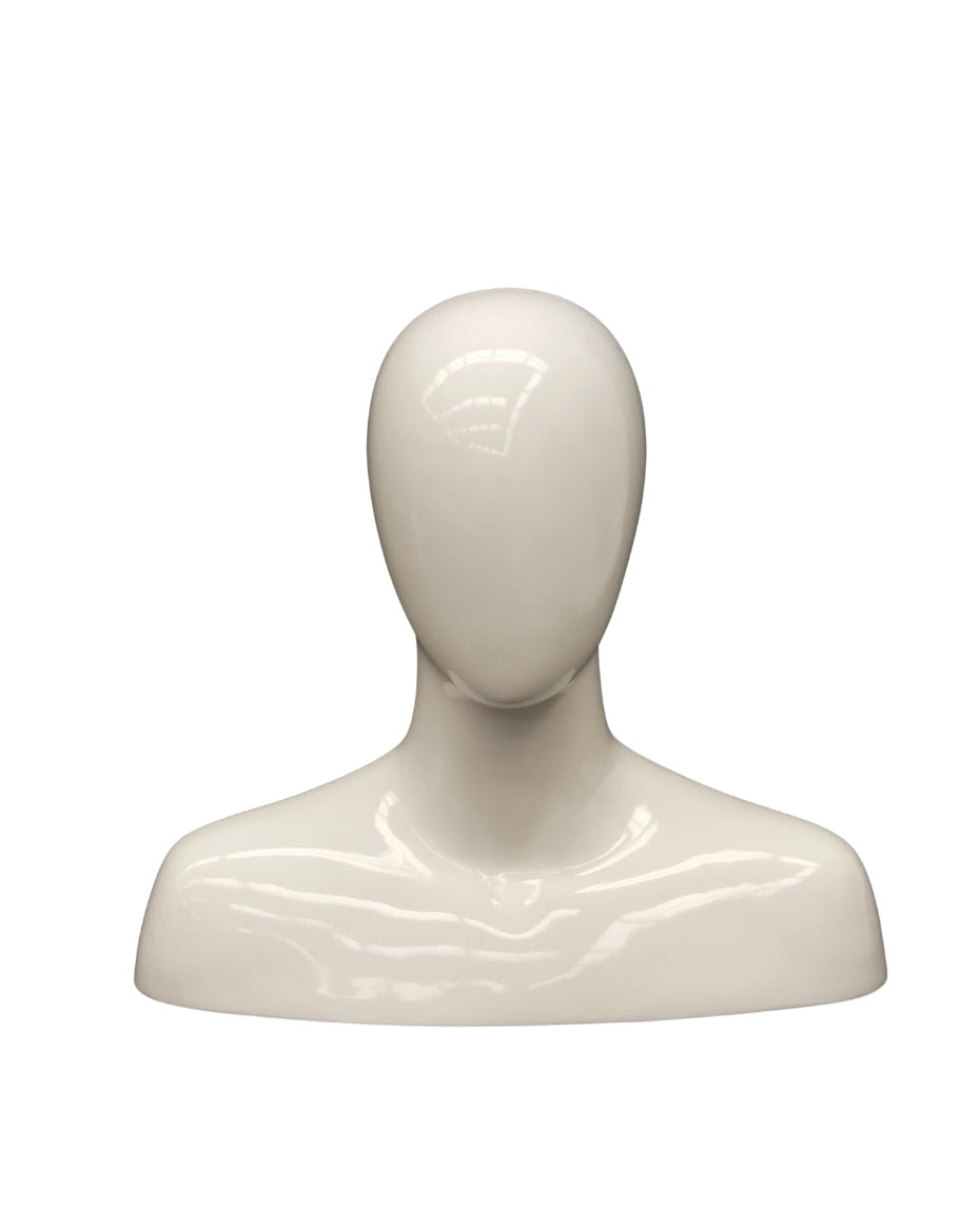 This Egg Head Male Mannequin Head features a sleek, abstract design with a modern egghead style and rounded shoulders, perfect for contemporary retail displays. The gloss White finish gives it a bold, high-end look that enhances the presentation of hats, wigs, eyewear, headphones, and other accessories.